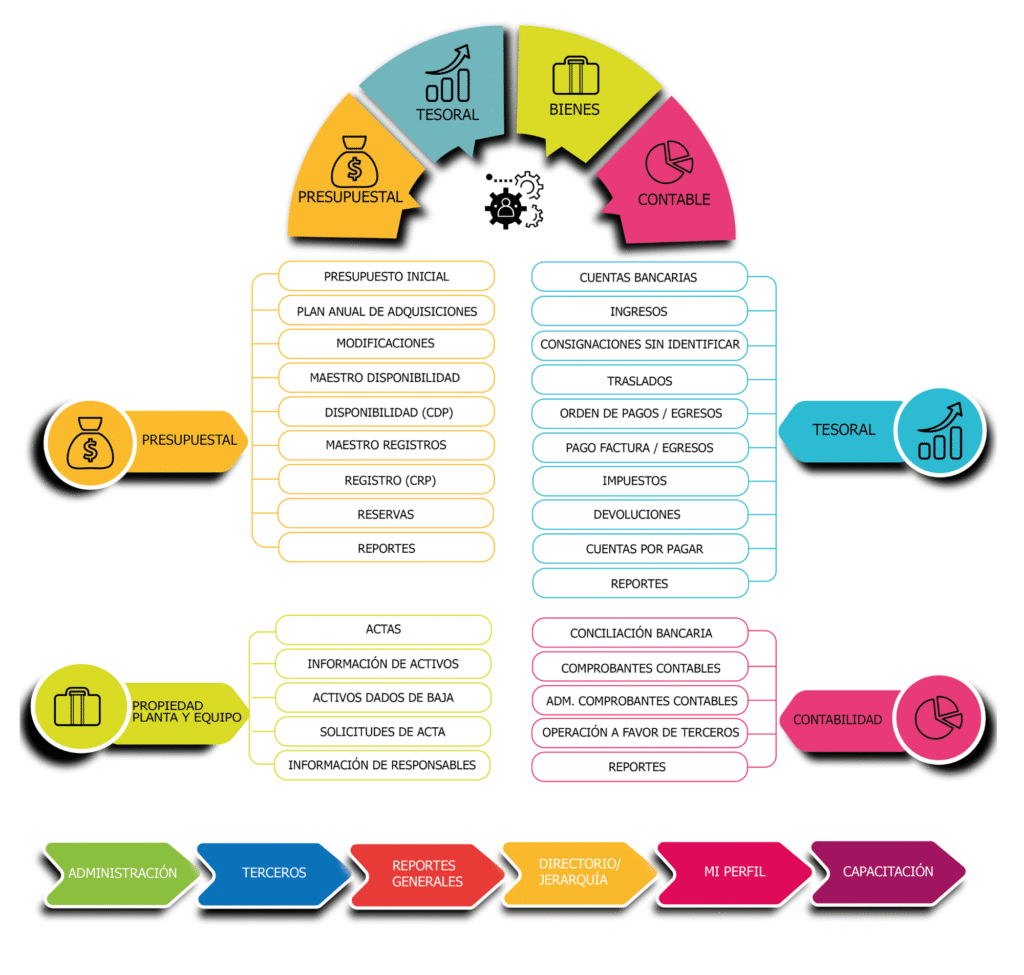 Transversalmente la herramienta tecnológica ADFI permite la parametrización en la normatividad aplicable desde el ente Nacional, Departamental y Municipal para la gestión financiera: